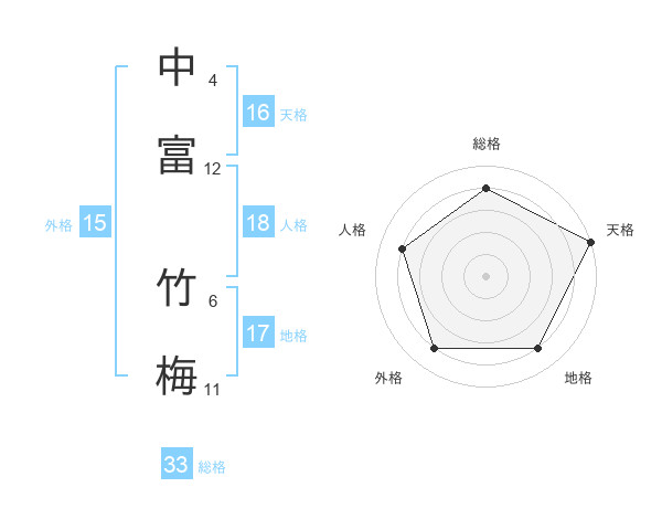 中富 竹梅さんを姓名の画数から五運を鑑定