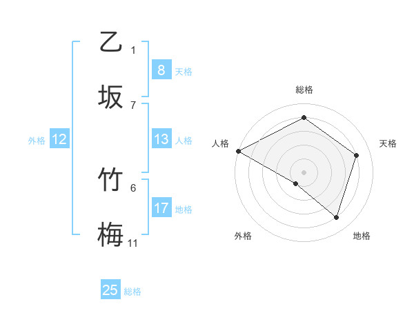 乙坂 竹梅さんの総格は25画の4点!