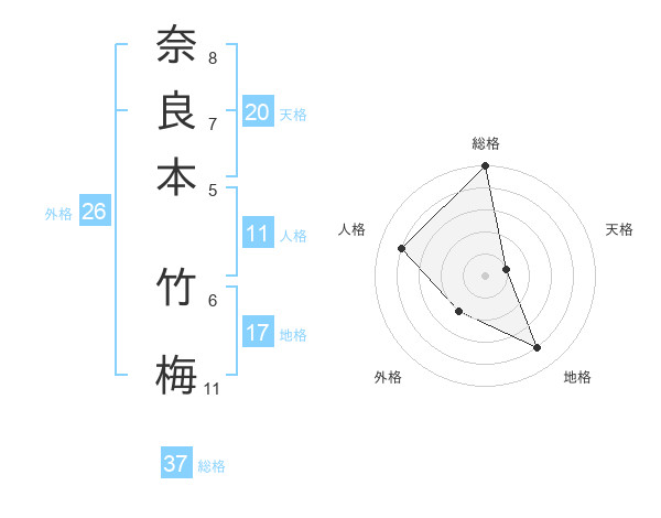 奈良本 竹梅さんの総格は37画の5点!