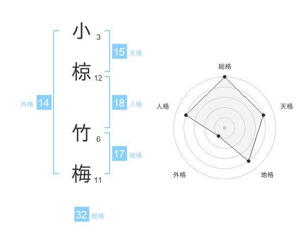 小椋 竹梅さんの総格は32画の5点!