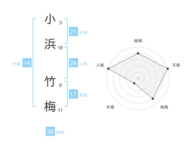 小浜 竹梅さんを姓名の画数から五運を鑑定