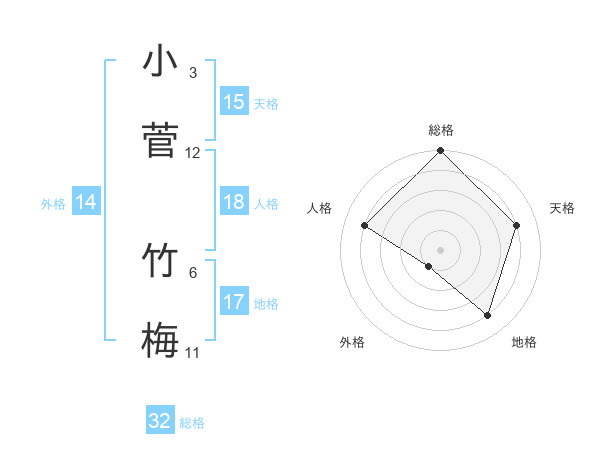 小菅 竹梅さんを姓名の画数から五運を鑑定