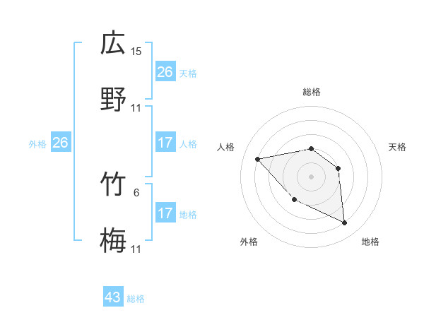 広野 竹梅さんを姓名の画数から五運を鑑定