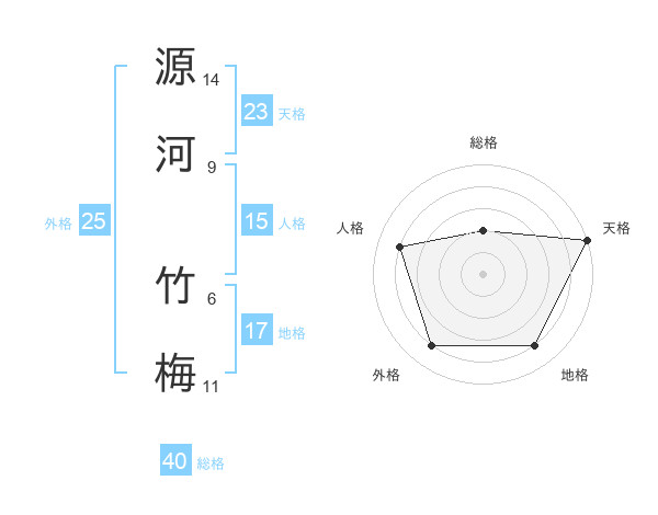 源河 竹梅さんの天格は23画の5点!