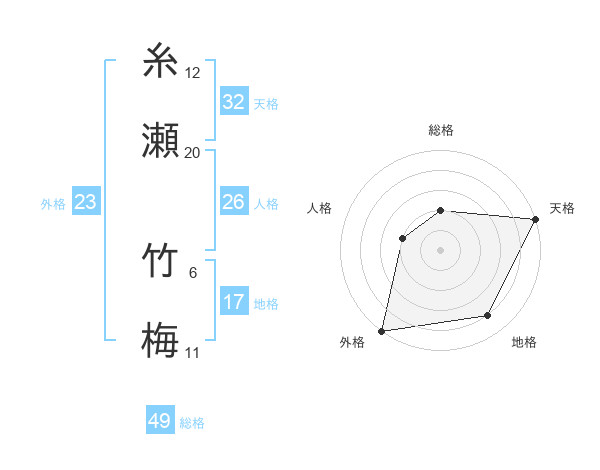 糸瀬 竹梅さんの外格は23画の5点!