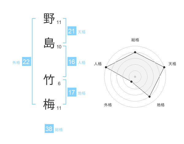 野島 竹梅さんを姓名の画数から五運を鑑定