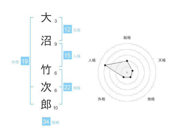 大沼 竹次郎さんの総格は34画の2点!