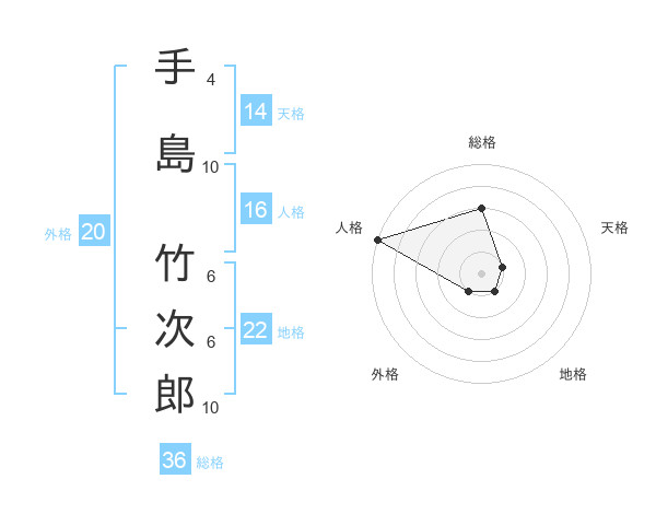 手島 竹次郎さんの地格は22画の1点!