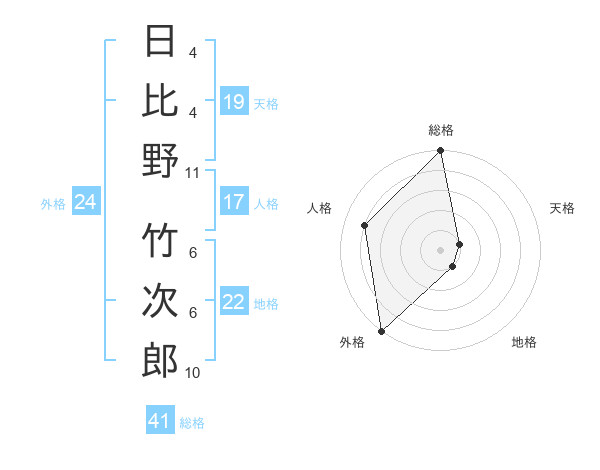 日比野 竹次郎さんを姓名の画数から五運を鑑定