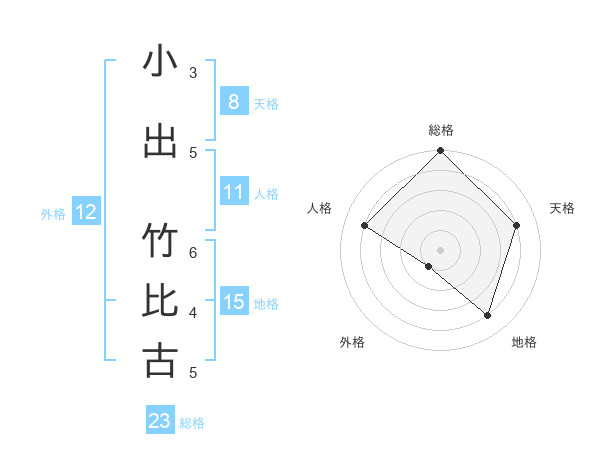 小出 竹比古さんを姓名の画数から五運を鑑定
