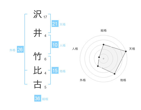 沢井 竹比古さんの天格は21画の5点!
