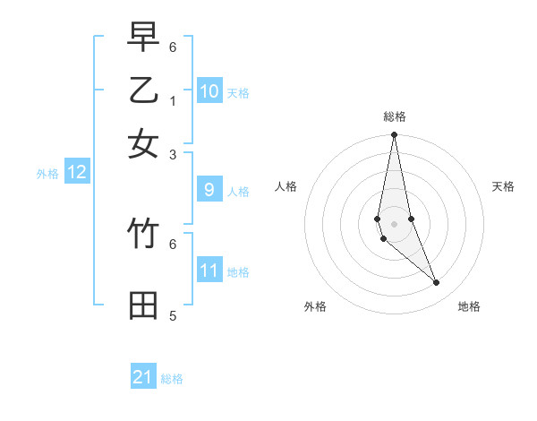 早乙女 竹田さんを姓名の画数から五運を鑑定