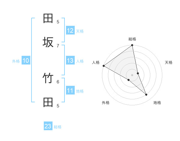 田坂 竹田さんの総格は23画の5点!