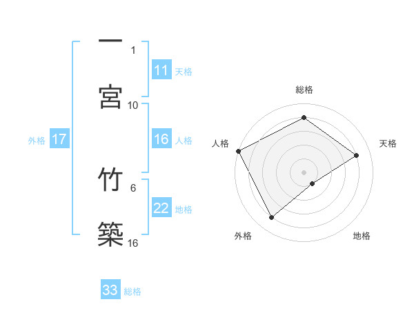 一宮 竹築さんを姓名の画数から五運を鑑定