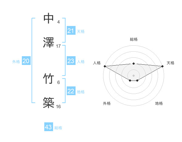 中澤 竹築さんを姓名の画数から五運を鑑定
