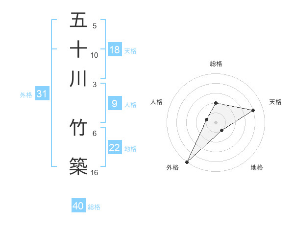 五十川 竹築さんを姓名の画数から五運を鑑定
