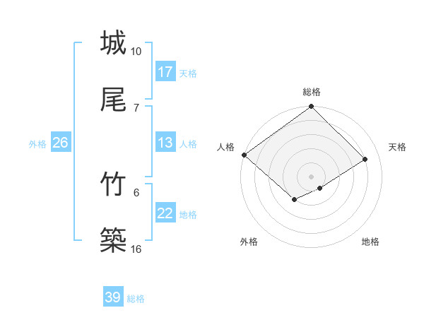 城尾 竹築さんの総格は39画の5点!
