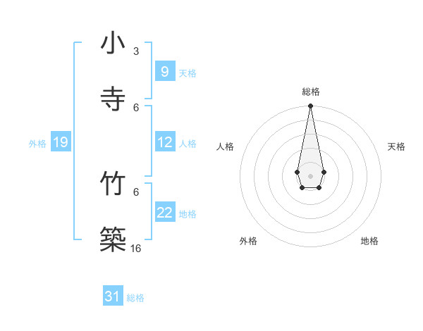 小寺 竹築さんを姓名の画数から五運を鑑定