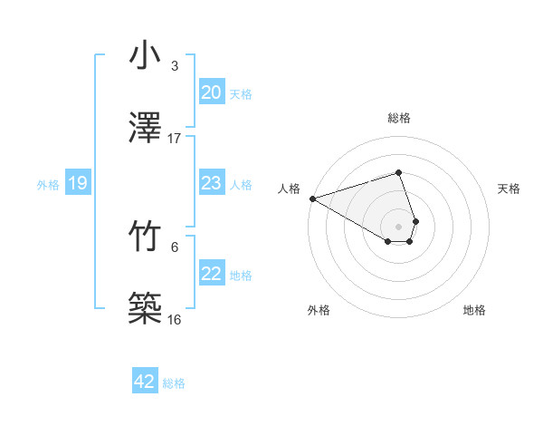 小澤 竹築さんを姓名の画数から五運を鑑定
