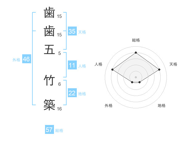 歯歯五 竹築さんの総格は57画の4点!