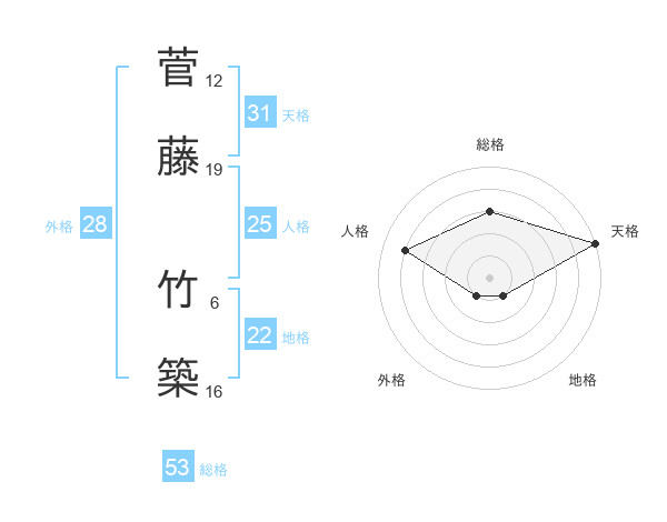 菅藤 竹築さんを姓名の画数から五運を鑑定