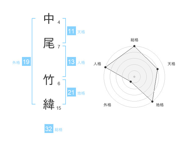中尾 竹緯さんを姓名の画数から五運を鑑定