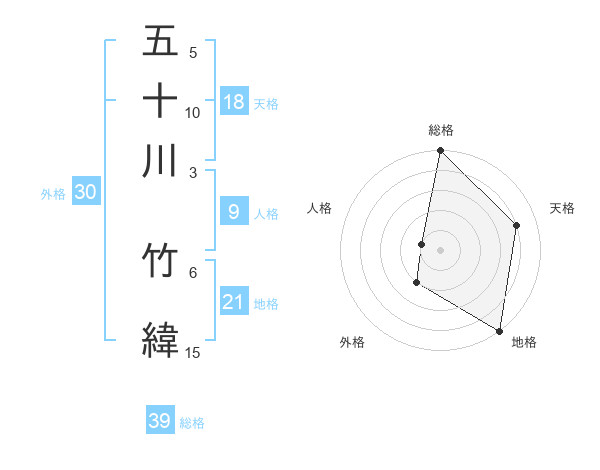 五十川 竹緯さんの総格は39画の5点!