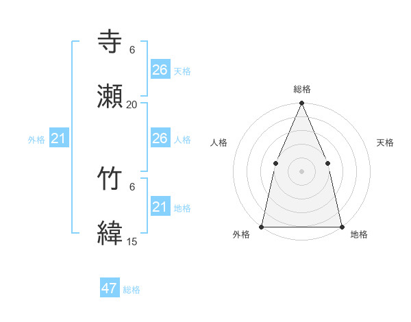 寺瀬 竹緯さんを姓名の画数から五運を鑑定