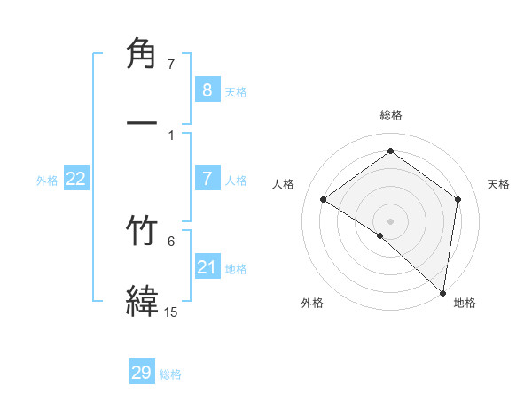 角一 竹緯さんの総格は29画の4点!