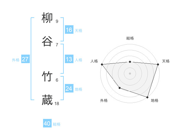 柳谷 竹蔵さんの地格は24画の5点!