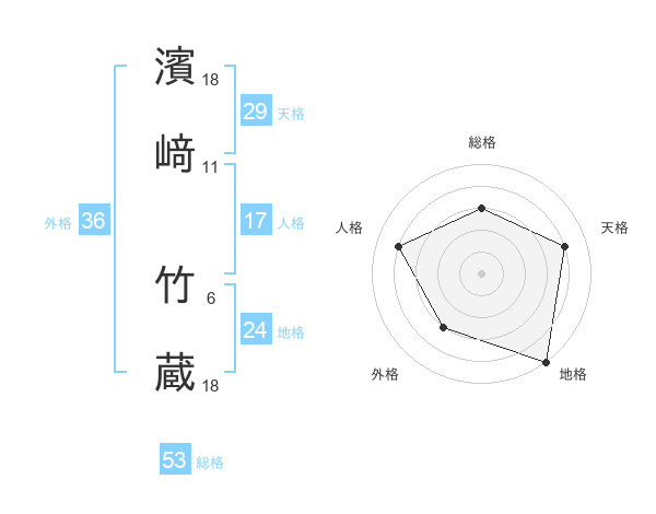 濱﨑 竹蔵さんの総格は53画の3点!