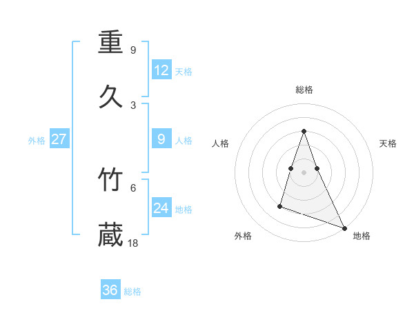 重久 竹蔵さんを姓名の画数から五運を鑑定