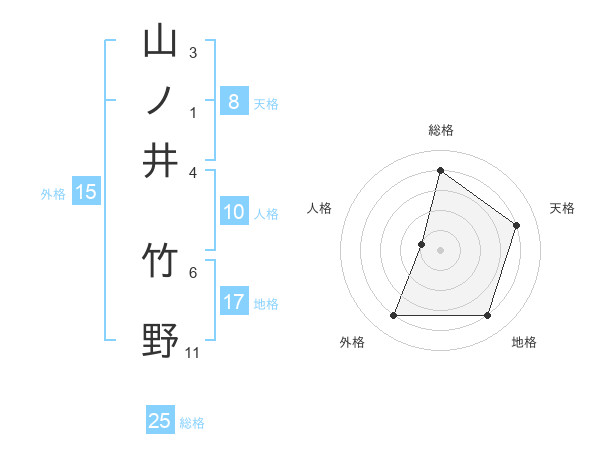 山ノ井 竹野さんを姓名の画数から五運を鑑定