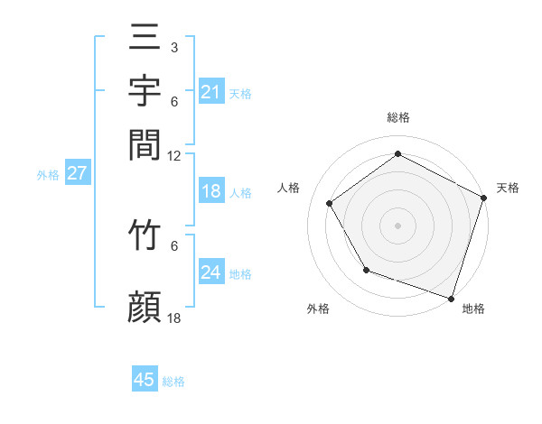 三宇間 竹顔さんを姓名の画数から五運を鑑定