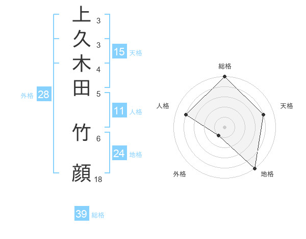 上久木田 竹顔さんを姓名の画数から五運を鑑定