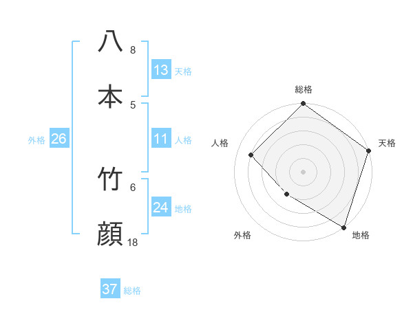 八本 竹顔さんの総格は37画の5点!