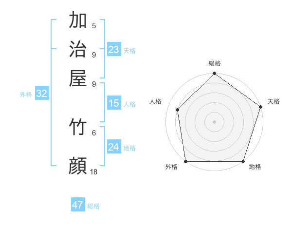 加治屋 竹顔さんの総格は47画の5点!