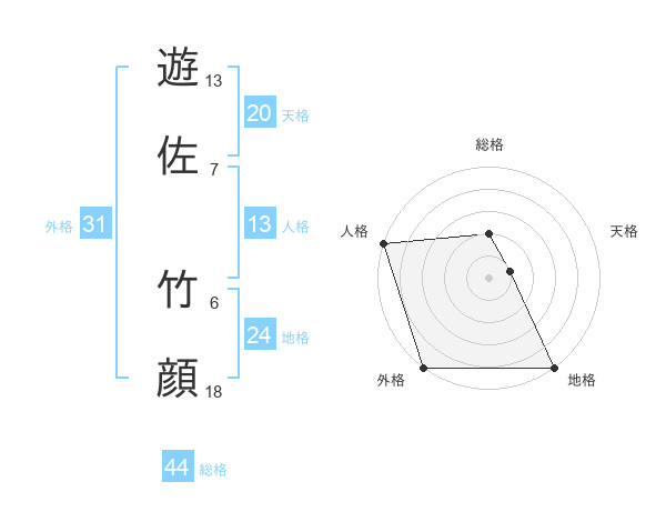 遊佐 竹顔さんを姓名の画数から五運を鑑定