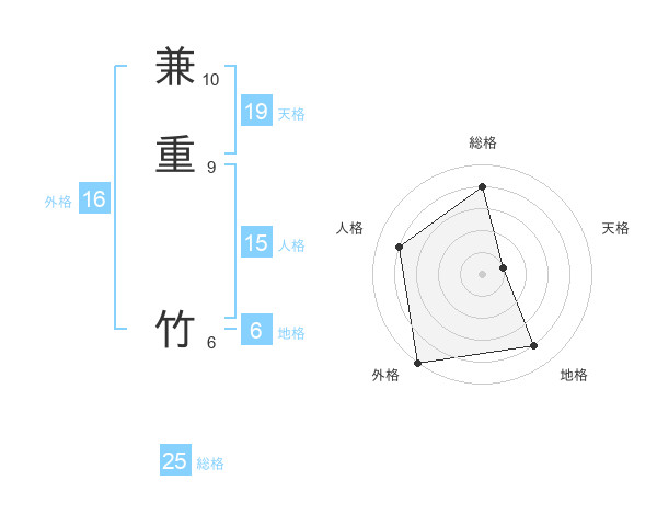 兼重 竹さんの外格は16画の5点!