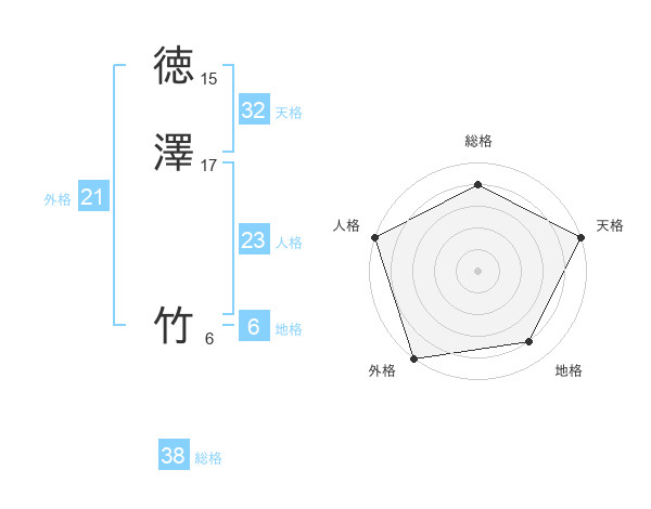 徳澤 竹さんの外格は21画の5点!