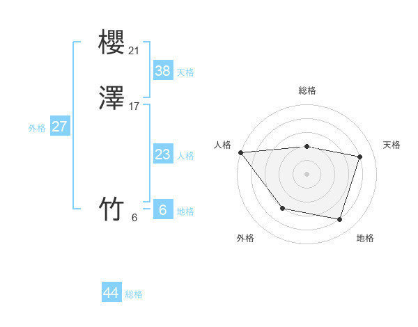 櫻澤 竹さんを姓名の画数から五運を鑑定