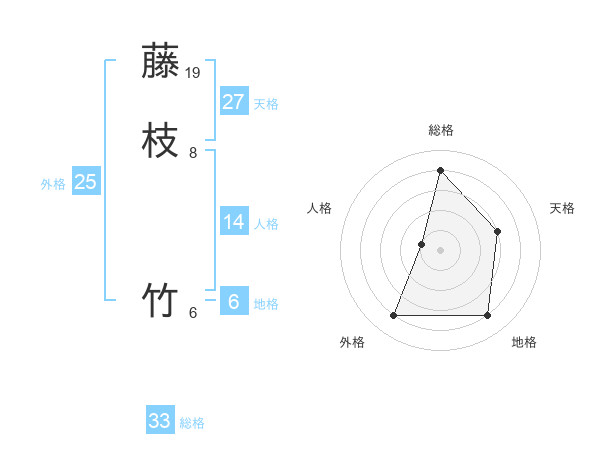 藤枝 竹さんを姓名の画数から五運を鑑定