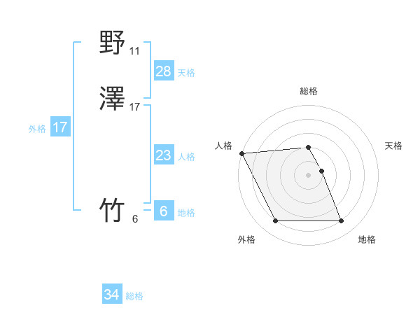 野澤 竹さんの総格は34画の2点!