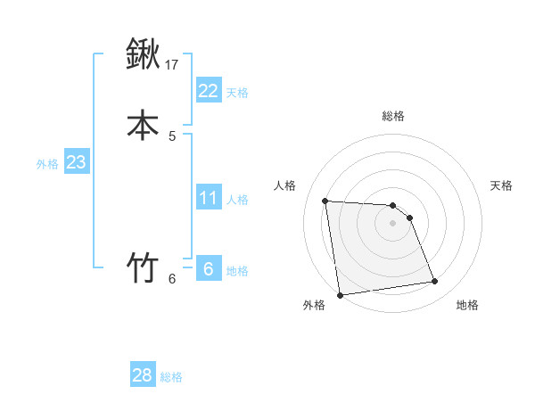 鍬本 竹さんの外格は23画の5点!