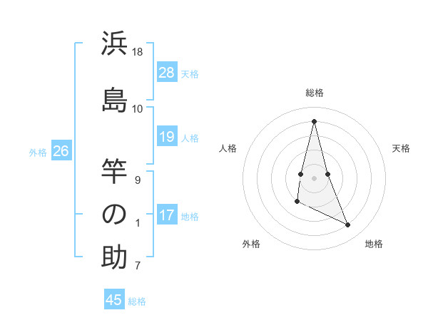 浜島 竿の助さんを姓名の画数から五運を鑑定