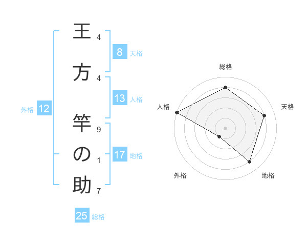 王方 竿の助さんを姓名の画数から五運を鑑定