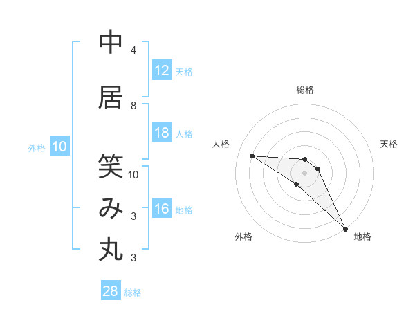中居 笑み丸さんを姓名の画数から五運を鑑定