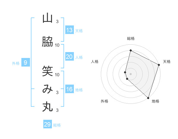 山脇 笑み丸さんを姓名の画数から五運を鑑定