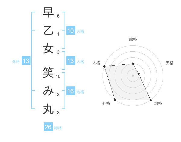 早乙女 笑み丸さんを姓名の画数から五運を鑑定
