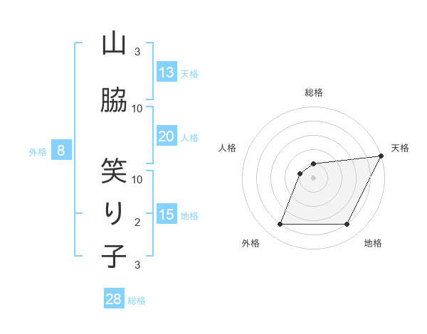 山脇 笑り子さんを姓名の画数から五運を鑑定
